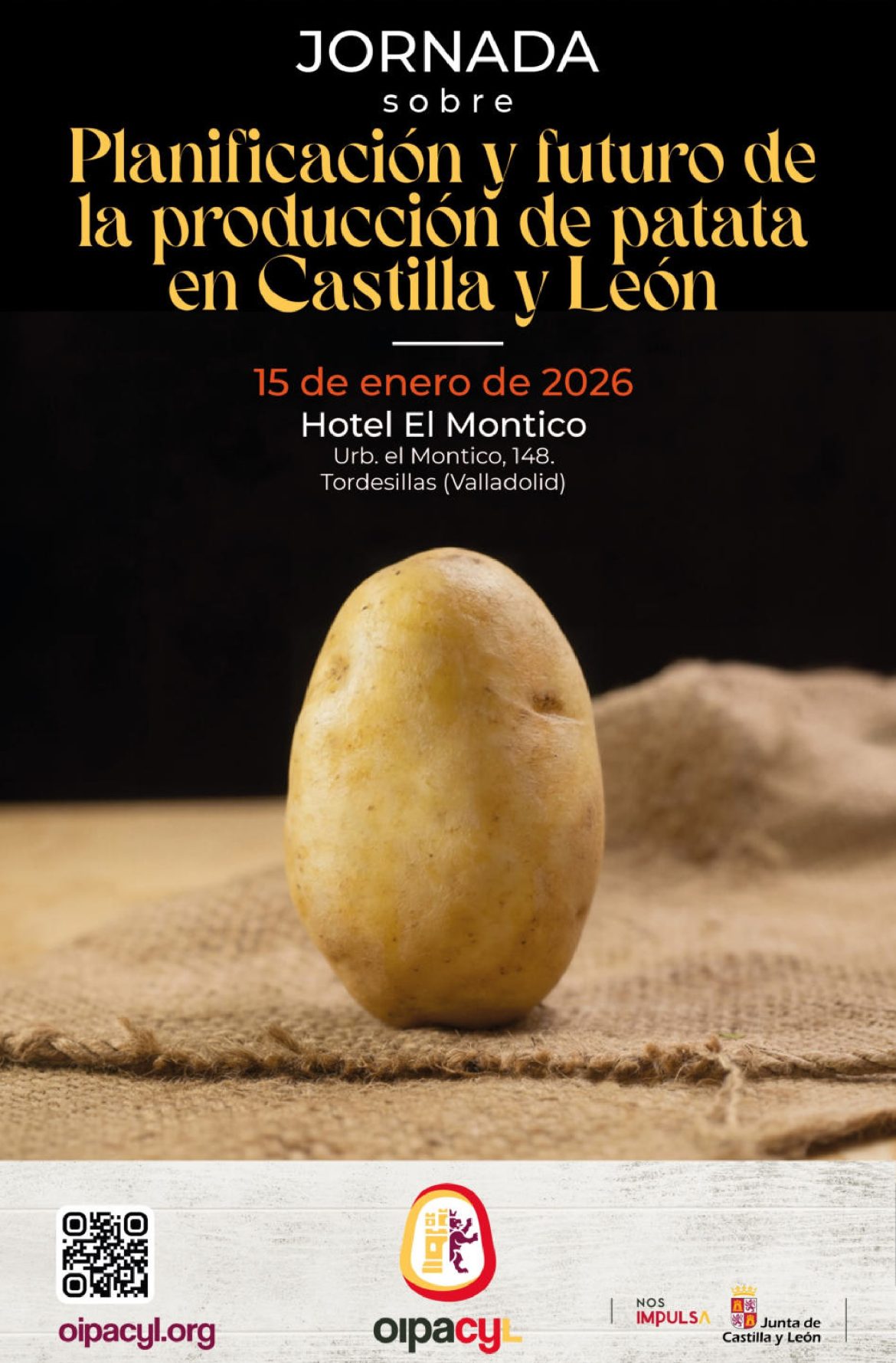 El próximo 15 de enero, jueves, a las 10:00 h, tendrá lugar la Jornada sobre Planificación y futuro de la producción de patata en Castilla y León, en el Hotel El Montico, en Tordesillas (Valladolid). Confirma tu asistencia a la Jornada por email (info@oipacyl.org) o por WhatsApp (696 054 730).